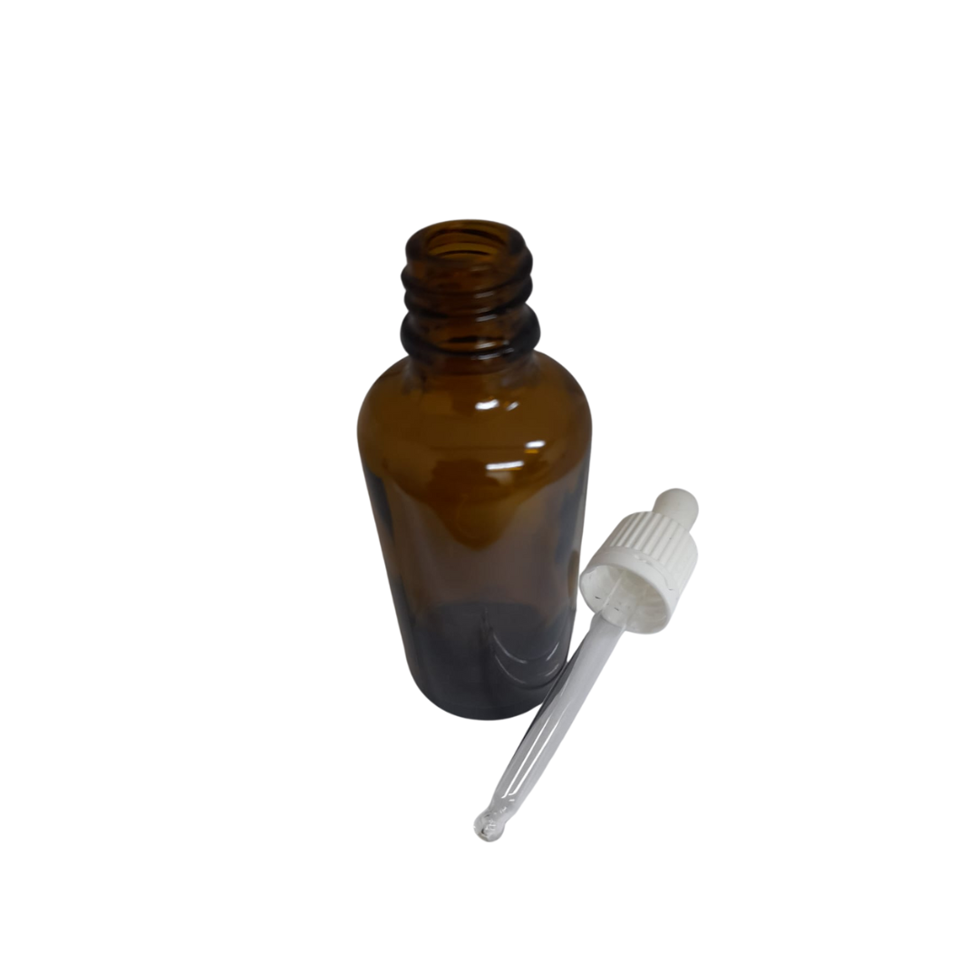 Amber Pipette Dropper Bottle (White Lid) – 50ml